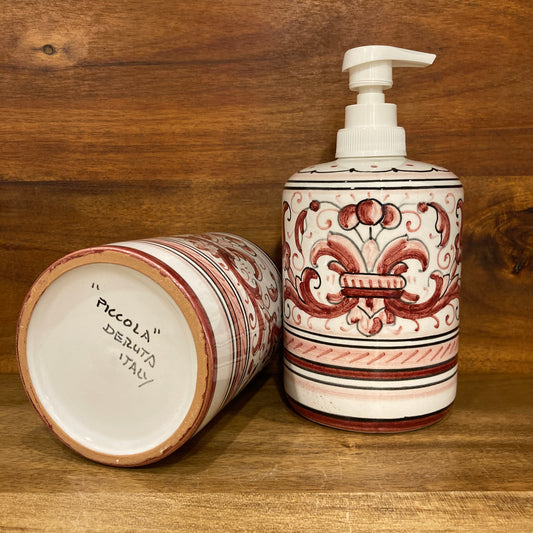 BUNDLE & SAVE | Ricco Deruta RED Majolica Italian Ceramic Soap Dispenser & Toothbrush Holder