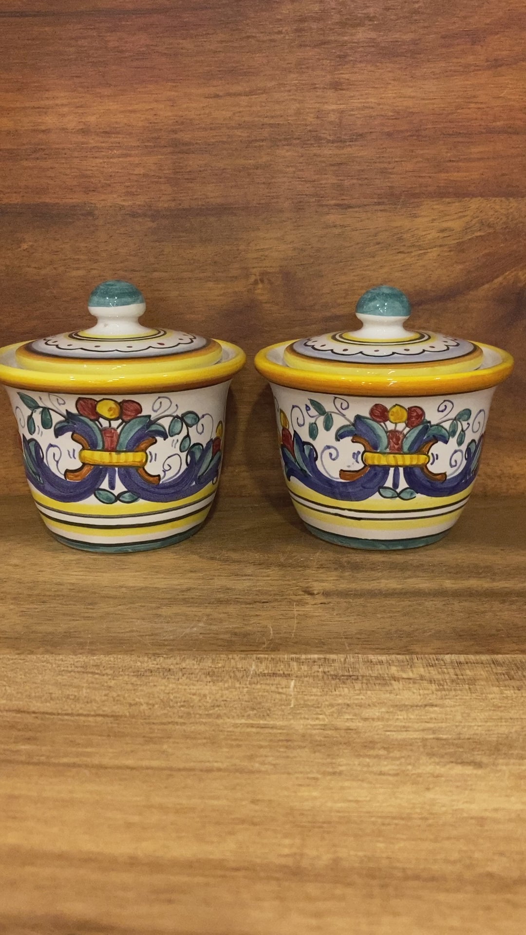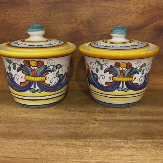 Ricco Deruta Majolica Italian Ceramic Small Condiment Spice Jars Set of 2